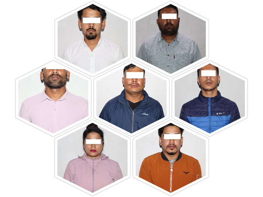 पक्राउ पर्नेमा बझाङ घर भएका धर्मराज थापा र उदयपुरको त्रियुगा–१० घर भएका २१ वर्षीय सुजन आचार्य पनि छन् । धर्मराज पत्रकारितामा आवद्ध छन् । सुजन आचार्य पनि आफुलाई पत्रकार दावी गर्छन् । उनीहरुले ७ करोड नदिए भिडियो ‘भाइरल’ बनाउने धम्की दिएका थिए । पीडित महिला केही रकम दिन राजी भएकी थिइन् । तर, प्रतिव्यक्ति १ करोड मागे पनि उनी प्रहरीकहाँ पुगिन् ।