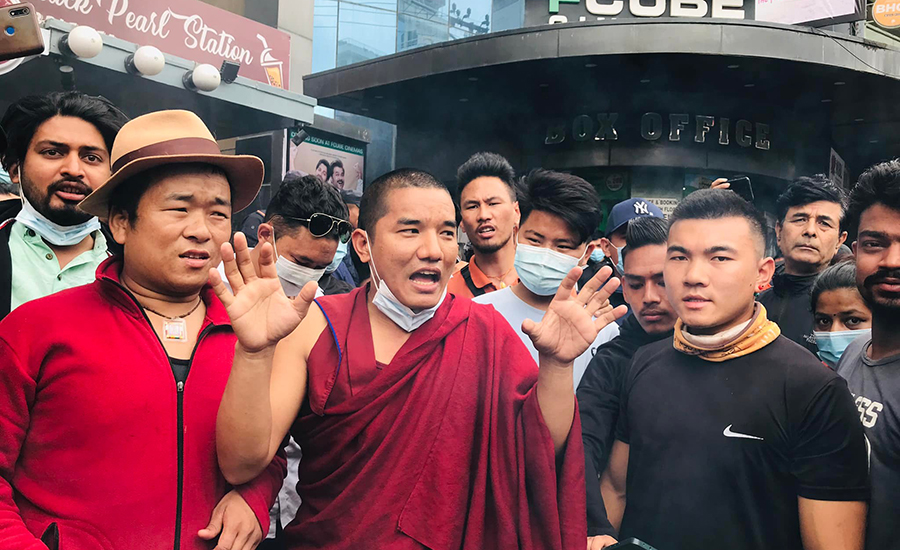 काठमाडौं । ‘कबड्डी ४’की अभिनेत्रीलाई दुर्व्यवहार गरेको आरोपमा पक्राउ परेका एक बौद्ध भिक्षुलाई तत्काल रिहाइ गर्न माग गर्दै प्रदर्शन चर्किएको छ । मंगलबार बिहान युवाको एक समूहले चावहिलस्थित केएल टावरअघि प्रदर्शन गर्दै फिल्म ‘कबड्डी ४’विरुद्ध नाराबाजी गरेका छन् ।