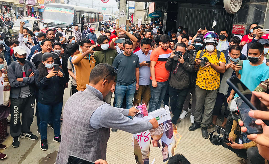 अभिनेत्रीमाथि दुर्व्यवहारको आरोपमा पक्राउ परेका युवकलाई रिहा गर्न माग गर्दै प्रदर्शन