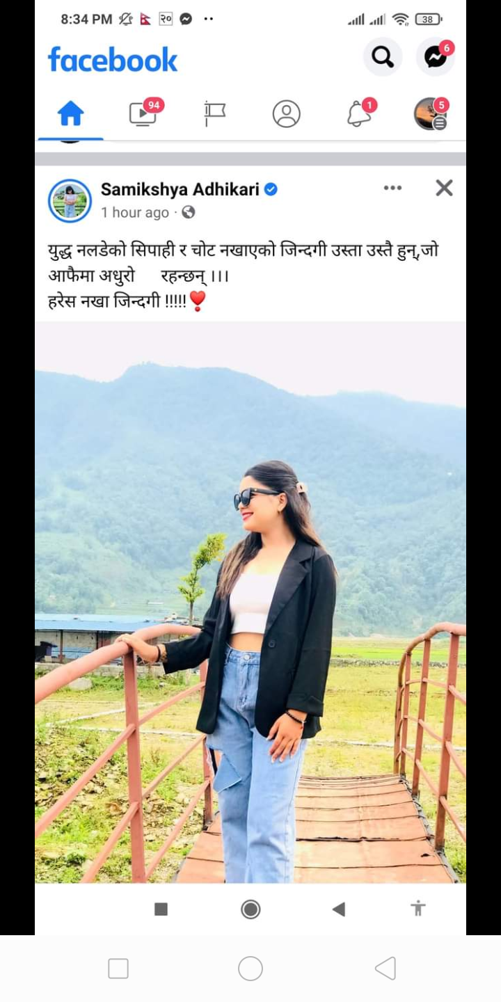 समिक्षाले जिन्दगी भनेर सम्बोधन गर्दै लेखेकी छन । युद्ध नलडेको सिपाही र चोट नखाएको जिन्दगी उस्ता उस्तै हुन्,जो आफैमा अधुरो रहन्छन् ।।।