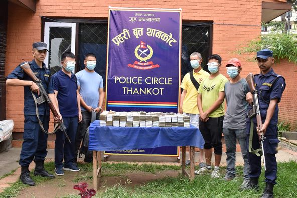 उक्त रकमसहित नुवाकोट बिदुर नगरपालिका-८ बस्ने ४४ वर्षीय फुलबहादुर गुरुङ र ४ जना चिनियाँ नागरिकसहित ५ जनालाई मंगलबार बिहान प्रहरीले पक्राउ गरेको छ ।