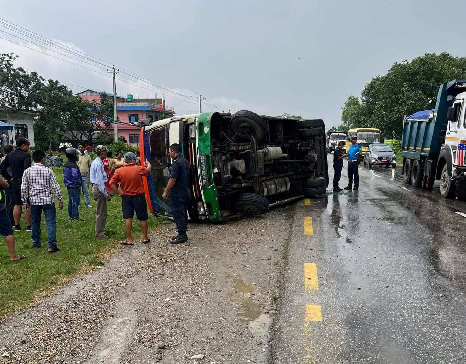 नारायणगढबाट बिरगंज जाँदै गरेको बस दुर्घटना: चालक फरार , १० जना घाइते