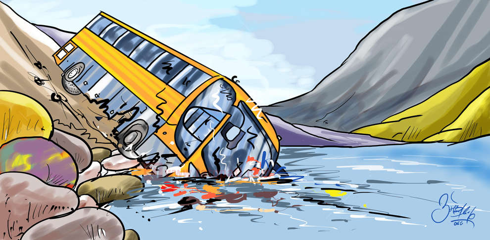 राजमार्गमा कुदिरहेका बेला आइतबार बेलुका बस नदीमा खसेको सरकारी अधिकारीहरुले जानकारी दिएका छन् ।