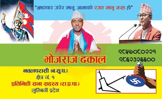 राप्रपाबाट पश्चिम नवलपरासी १ प्रतिनिधि सभा सदस्यका उम्मेदवारी दिएका भोजराज ढकाल, नवलपरासी १ क प्रदेश सभा सदस्यका उम्मेदवार नवनित कुमार मिश्र, नवलपरासी १ ख का चन्द्रभान कोइरी लगायतका टोली निर्वाचन प्रचार अवधि शुरु भएदेखि घरदैलो अभियानमा व्यस्त छन् ।