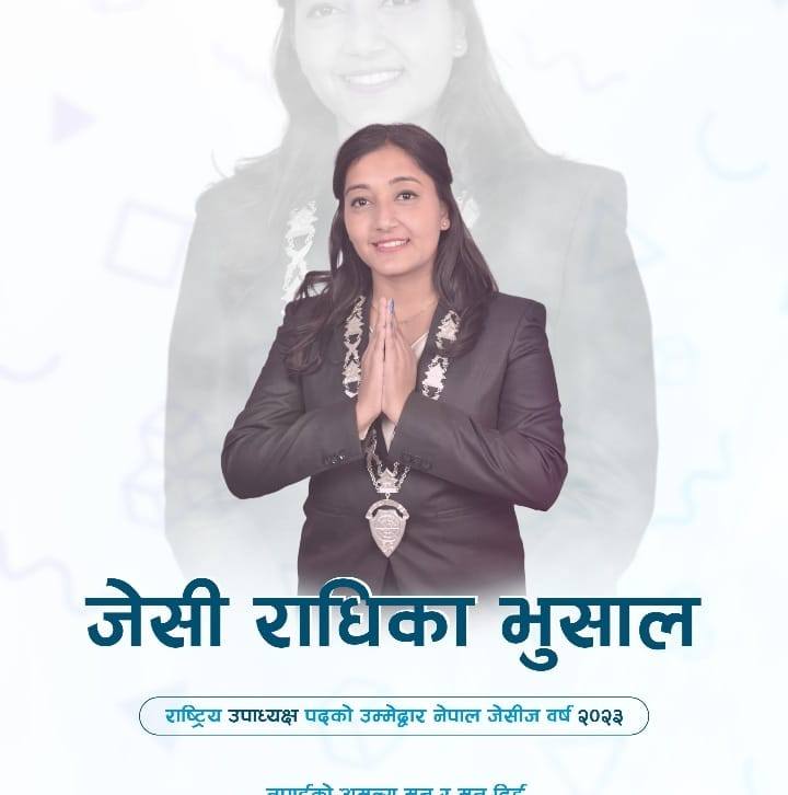 नवलपुर जेसीज २०२२ की अध्यक्ष जेसी राधिका भुसाल जेसीजको ४९ औं राष्ट्रिय महाधिवेशनमा उपाध्यक्ष पदका लागि उभिएकी छन् ।