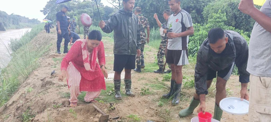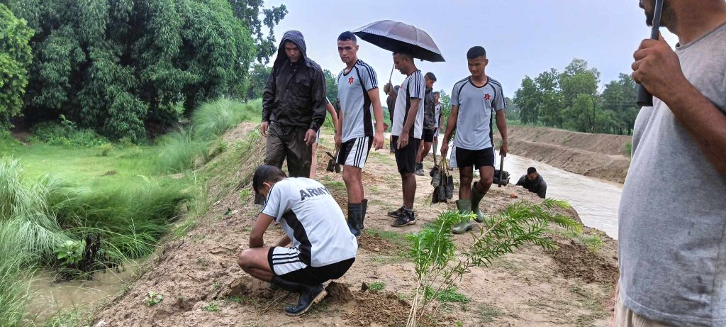 नेपाली सेनाद्धारा झरही नदीको किनारमा बृक्षारोपण