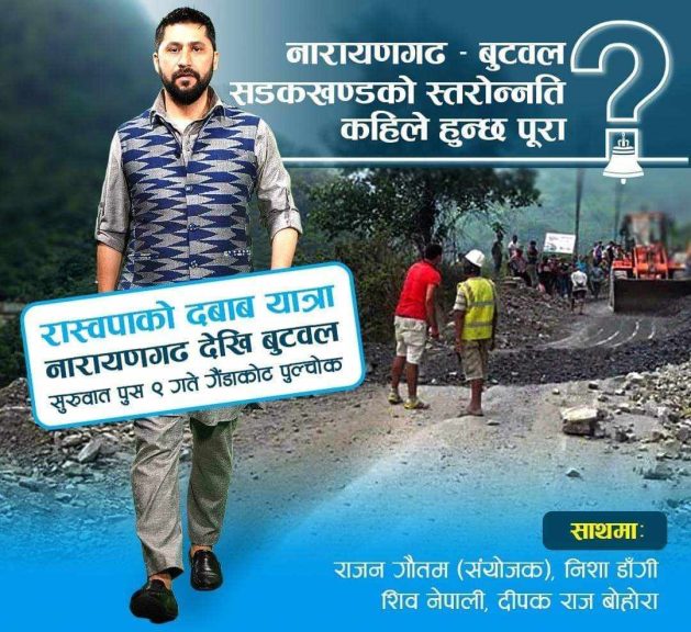 नारायणगढदेखि बुटवलसम्म ११३ किलोमिटर हिँडेर नै रास्वपाले दबाब यात्रा गर्ने जनाएको छ।