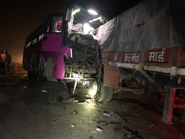 काठमाडौं जाँदै गरेको बस चितवनमा ट्रकसँग ठोक्कियो