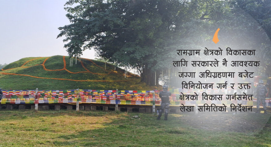 गौतम बुद्धको अस्थिधातु समाधिस्थल नवलपरासीको रामग्राम क्षेत्र उत्खनन एवं बौद्ध स्तूपलगायत संरचना निर्माण तथा व्यवस्थापनका लागि भन्दै लुम्बिनी विकास कोषले बिनाप्रतिस्पर्धा एक निजी कम्पनीलाई ९९ वर्षका लागि सुम्पिने गरी भएका सबै सम्झौता, समझदारी रद्द गर्न प्रतिनिधिसभाको सार्वजनिक लेखा समितिले निर्देशन दिएको छ ।