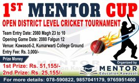 कावासोतीमा आजदेखि मेन्टर कप क्रिकेट, पहिलो खेल मुकुन्दसेन र रजहरबीच हुने