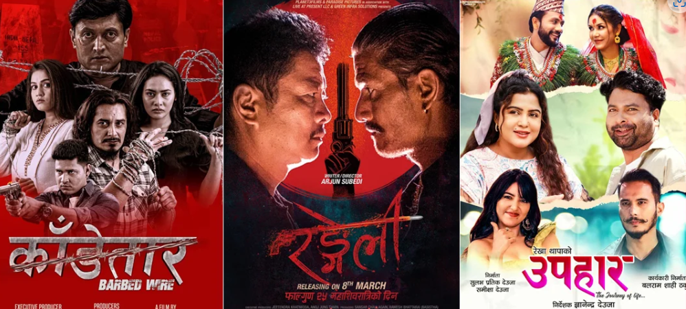 २५ गते शिवरात्रिको अवसर पारेर रिलिज हुन लागेका ‘उपहार’, ‘काँडेतार’ र ‘रङ्गेली’ तीनै दर्शकमाझ प्रतीक्षित फिल्म हुन् । स्टार कलाकारले भरिएका यी तीन फिल्म विषयवस्तु र मेकरका हिसाबले पनि राम्रै मानिएका छन् ।