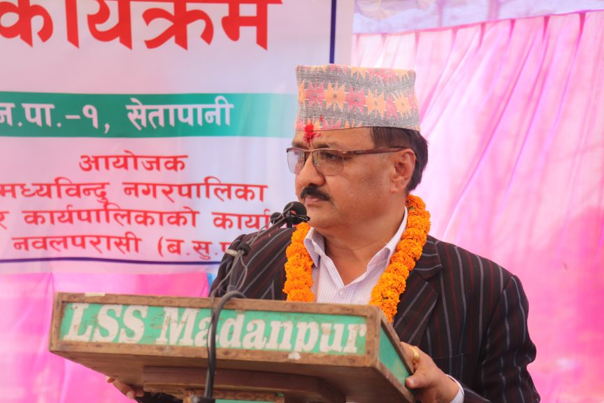त्यसैगरी मध्यविन्दु नगरपालिकाका नगर प्रमुख भिमलाल अधिकारीले आफूले चुनावमा गरेको बाचा अनुसार भूमिहिन सुकुम्बासीहरुलाई लालपूर्जा दिने पहिलो प्रथामिकतामा राखेर आफूले काम गरेको बताए ।