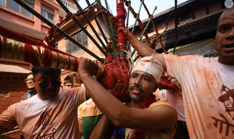 भक्तपुर, वैशाख २ । बिहानैदेखि सिन्दुर खेल्दै विभिन्न देवीदेवताका खट जात्रा गरेर रमाउँदै बिस्का चलिरहेको मध्यपुरथिमिमा मध्यान्हदेखि भने बोडे क्षेत्रमा मान्छेहरुको भीड बढ्दै गयो । हेर्दाहेर्दै मध्यपुरथिमि नगरपालिका बोडेको पाँचो गणेशको दक्षिण फर्केको पाटी आसपासदेखि बोडेको अधिकांश क्षेत्रमा मानिसहरुको भीड निकै बाक्लो भयो ।