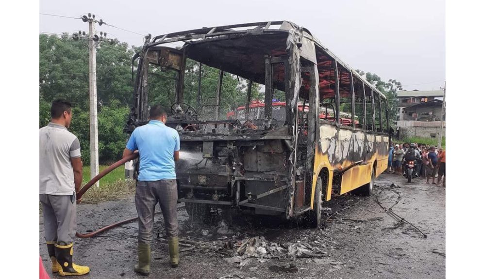 आइतबार बिहान सवा ८ बजे भरतपुर महानगरपालिका वडा नम्बर २० दद्रेनी नजिकै स्मल हेभेन स्कुल बसमा आगजनी गरेको भएको थियो।