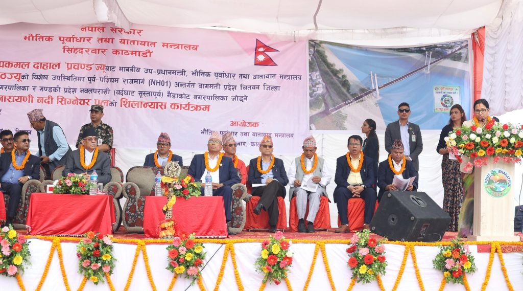 नारायणी नदीमाथि निर्माण हुने ‘सिग्नेचर ब्रिज’को प्रधानमन्त्री प्रचण्डद्वारा शिलान्यास