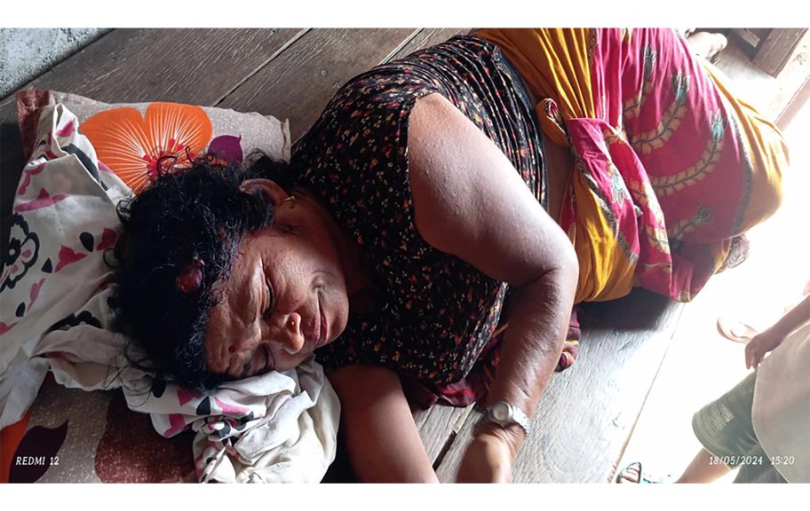 उनको टाउकेमा चोट लागेको छ । उनलाई ४ जना महिलाहरुले टाउकोमा ढुंगाले प्रहार गरी घाइते बनाएका हुन् ।