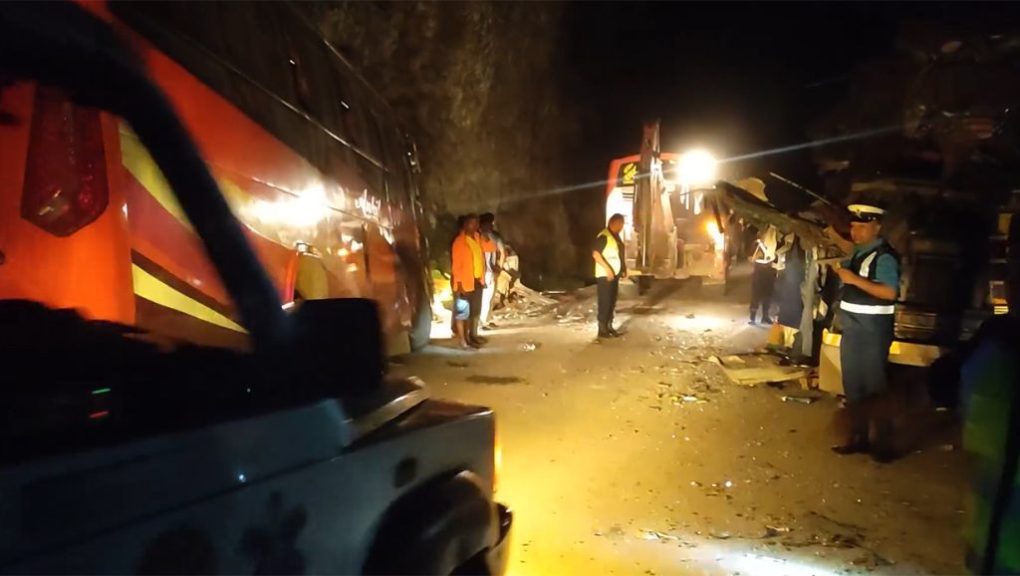 काठमाडौंबाट प्युठान जाँदै गरेको बा४ख ९०८६ नम्बरको बस, नारायणगढबाट मुग्लिनतर्फ जाँदै गरेको ना३ख ७९१५ नम्बरको ट्रक, काठमाडौंबाट बर्दिवासतर्फ जाँदै गरेको ना७ख ३२४८ नम्बरको बस र वीरगञ्जबाट काठमाडौंतर्फ जाँदै गरेको ना६ख ८९६८ नम्बरको बस आइतबार राति साढे १२ बजेतिर एकैठाउँमा ठोक्किएका थिए ।