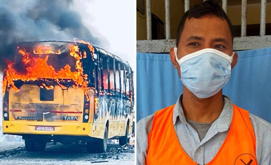 निजी स्कुल बसमा जलाएको आरोपमा सामुदायिक विद्यालयका अध्यक्ष पक्राउ