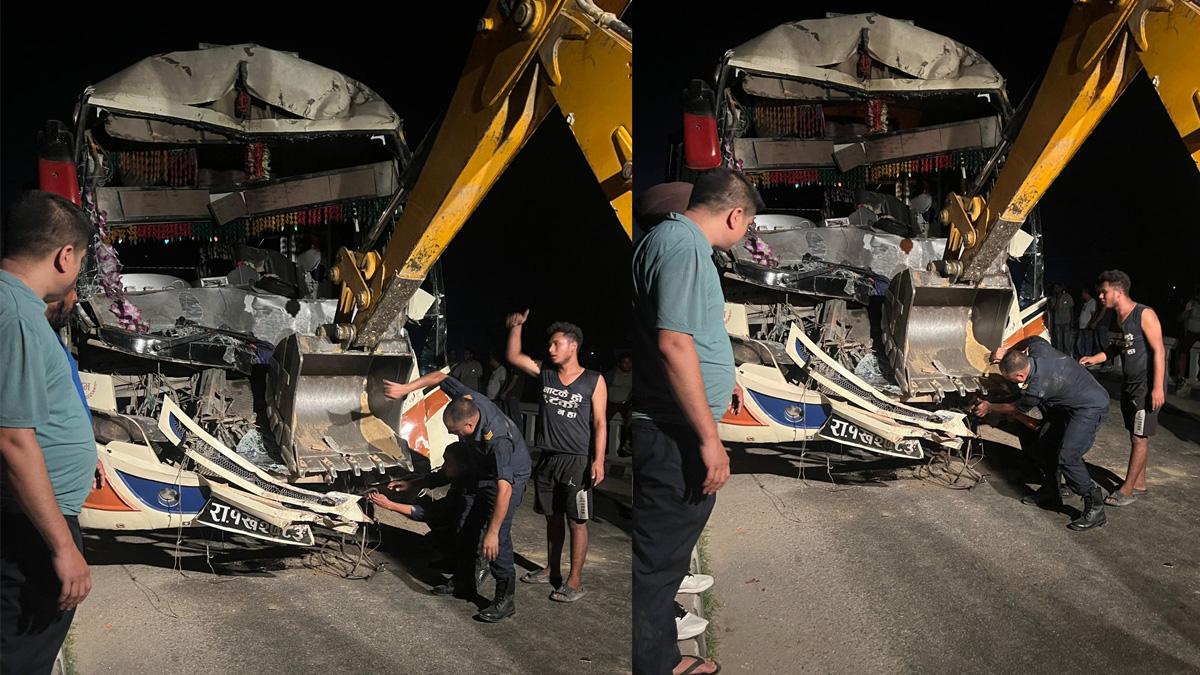 दाङबाट काठमाडौं आउँदै गरेको रा १ ख २७८३ नम्बरको बस गएराति ११:५० बजे रूपन्देहीको सैनामैना नगरपालिका-१० सालझन्डी बजारस्थित पुलमा बिग्रेर राखेको लु १ ख ६८७ नम्बरको बालुवा बोकेको ट्रकमा ठोक्किएको थियो।