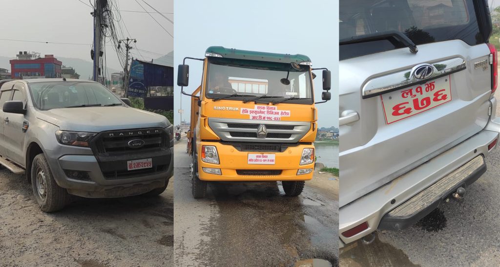 जिल्ला ट्राफिक प्रहरी कार्यालय नवलपुरका प्रहरी निरीक्षक अच्युतराज आचार्यका अनुसार ट्राफिक प्रहरीले बुलिङटार गाउँपालिकाको लु १ झ ६७६, सडक डिभिजन कार्यालय हेटौडाको गण्डकी प्रदेश ०३–००१–००४२, स्वास्थ्य अनुसन्धान परिषदको बा.प्र. ०३–०१ ब ६७२० र संघीय आयोजना कार्यान्वयन इकाइको बा २ झ २९५५ नम्बरको सरकारी गाडीलाई ट्राफिक प्रहरीले नियन्त्रणमा लिएको हो । ति सवारी साधनलाई दिन भर नियन्त्रणमा लिएर ५ बजे पछि छाडिएको उनले बताए ।