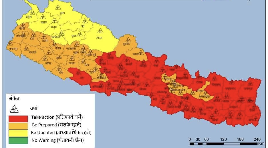 महाशाखाले सुदूरपश्चिम र कर्णालीबाहेकका पाँच प्रदेशमा उच्च जोखिमका हिसाबले रेडअलर्ट जारी गरेको छ। कर्णाली र सुदूरपश्चिमका उच्च पहाडी र हिमाली क्षेत्रमा जोखिम नरहे पनि बाँकी क्षेत्रमा भने जोखिम आकलन गरिएको छ।