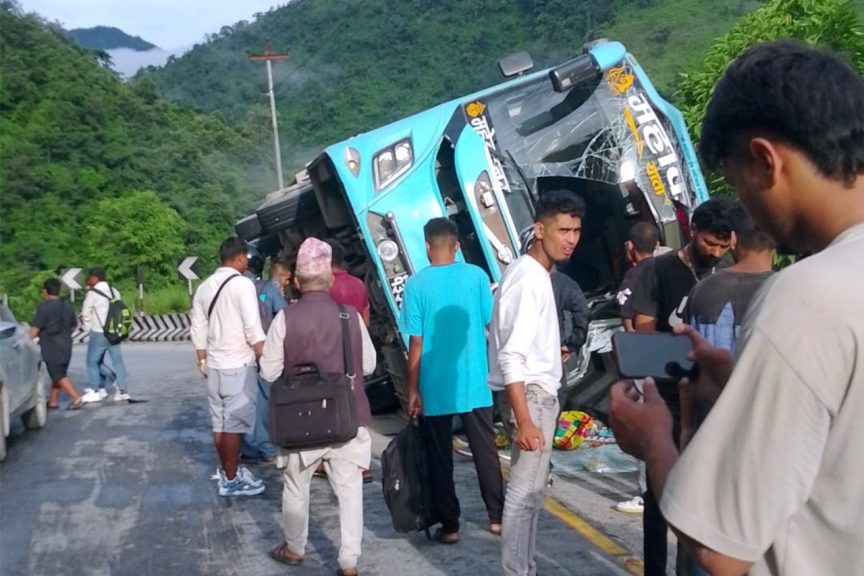 नारायणगढ-मुग्लिन सडकको घुमाउनेमा बस दुर्घटना