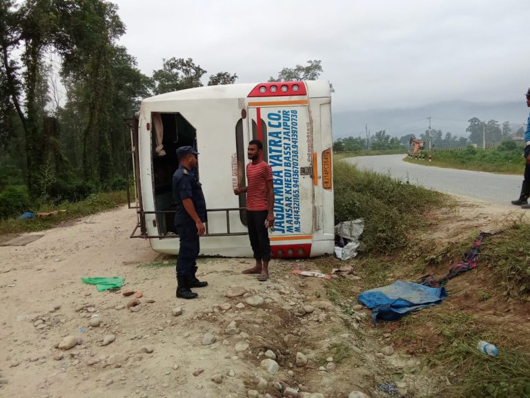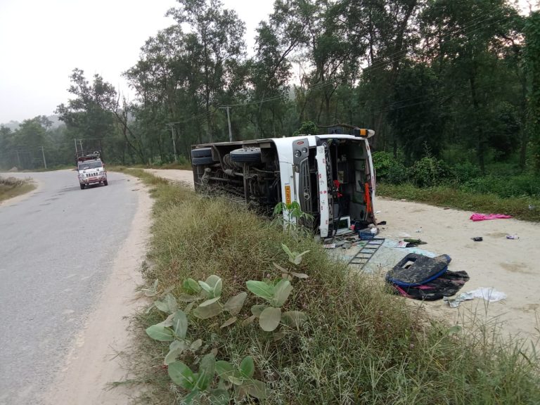 नवलपुरमा बस पल्टिँदा २३ जना घाइते