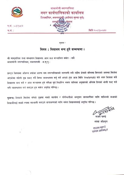 आज कावासोती भित्र रहेको सबै शैक्षिक संस्थामा विदा गरिएको र परीक्षा चलिरहेका सामुदायिक विद्यालयको आजको परीक्षा नियमित परीक्षा सकिएको भोलिपल्ट गर्ने सूचनामा उल्लेख गरिएको छ ।