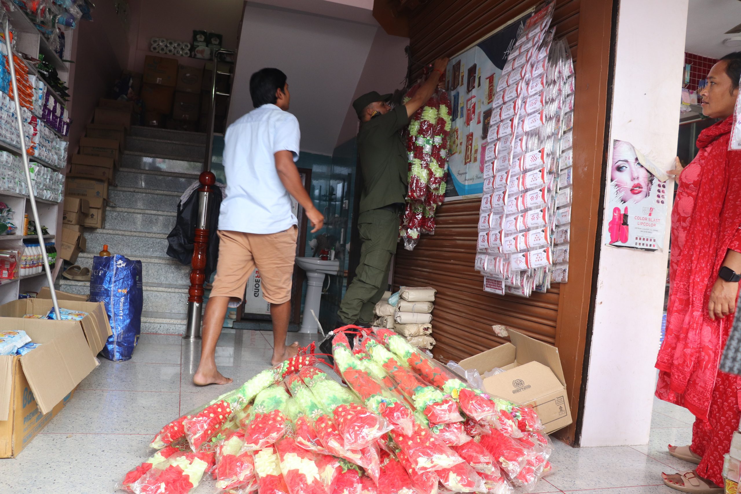 अनुगमनको क्रममा अटेर गरेर प्लाष्टिकका माला विक्री गर्न राख्नेहरुको मालाहरु जफत गरिएको कावासोती नगरपालिकाका अनुमगन शाखाका संयोजक डा. टेकराज पौडेलले बताए ।