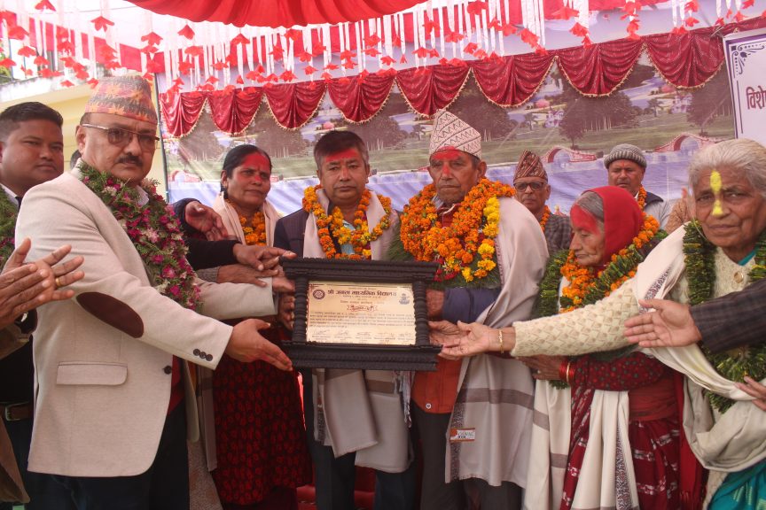 उनीहरुलाई मध्यविन्दु नगरपालिकाका नगर प्रमुख भिमलाल अधिकारीले दोसल्ला र तामापत्रले सम्मान गरेका थिए ।