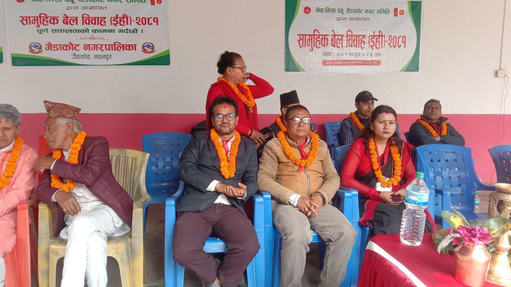 मिसा देबू गैडाकोटको आयोजनामा आज गैडाकोटमा नेवाः समुदायका बालबालिकाको सामुहिक बेलविवाह गरिएको हो । वेलविवाहमा गैडाकोटदेखि त्रिवेणीसम्मका १९ जना नेवार बालिकाहरुको सहभागिता रहेको छ ।