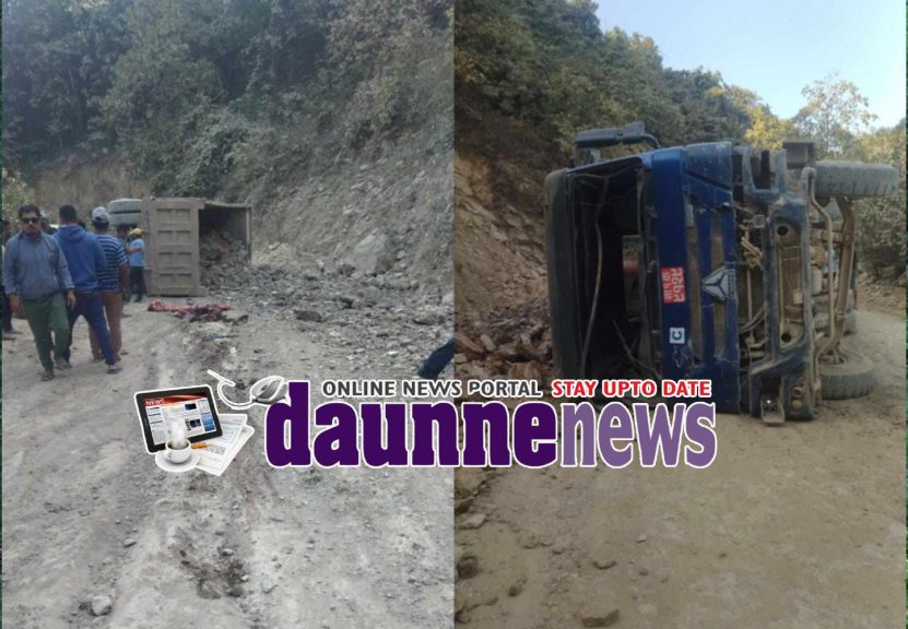 पाल्पाबाट चुनढुङगा लोड गरी नवलपुरको बिनयी त्रिवेणी गा.पा.१ होङसी कम्पनी तर्फ आउदै गरेको ना १ क ९१२९ न.को ट्रिपर चालकले नियन्त्रण गुमाई पल्टन गएको जिल्ला प्रहरी कार्यालय नवलपुरका प्रहरी उपरीक्षक यादव ढकालले बताए ।