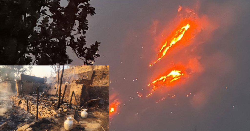 वनमा लागेको डढेलो गाउँ पस्यो, विद्यालयसहित सात घर जलेर नष्ट