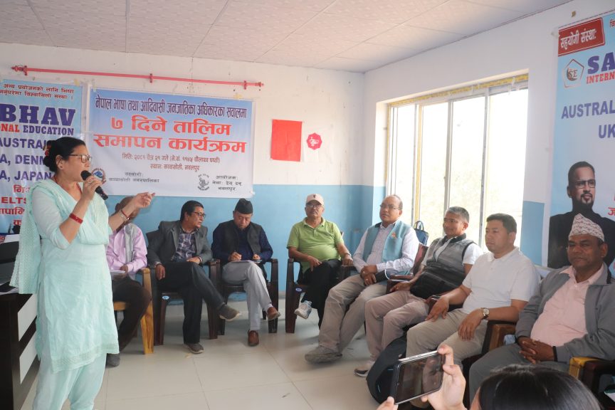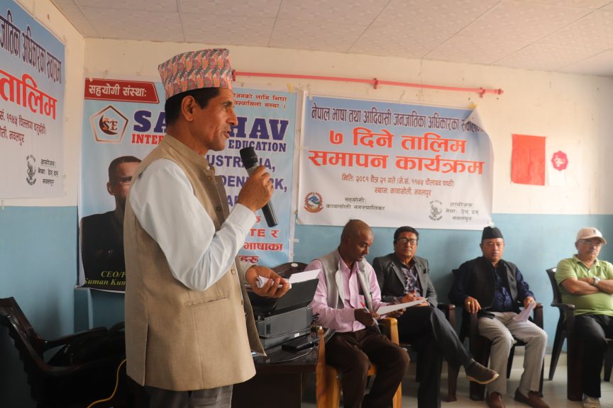 नवलपुर । नेवाः देय् दबू नवलपुरको आयोजनामा भएको नेपाल भाषा तथा आदिवासी जनजातिका अधिकारका सवाल विषयक ७ दिने तालिमको आज समापन गरिएको छ ।