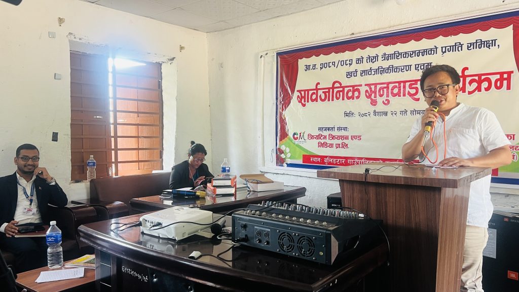 नवलपुर — बुलिङटार गाउँपालिकाले आर्थिक वर्ष २०८१÷०८२ को तेस्रो त्रैमासिक सार्वजनिक सुनुवाइ कार्यक्रम सोमबार सम्पन्न गरेको छ । कार्यक्रममा सरोकारवालाहरुले कालिगण्डकी डाइभर्सन आयोजना र नदीजन्य पदार्थ उत्खनन् प्रति चासो व्यक्त गरेका थिए । उनीहरुको प्रश्नको जवाफ दिंदै गाउँपालिका अध्यक्ष दिपेन्द्र सुनारी मगरले कालिगण्डकी डाइभर्सन आयोजना सञ्चालन हुँदा कालिगण्डकी सभ्यता र स्थानीय जनजीवनमा प्रतिकूल असर पर्ने भएकाले यसबारे विभिन्न स्थानीय तहसँग छलफल भइसकेको र आफू स्वयं सर्वोच्च अदालतमा भएको छलफलमा समेत सहभागी भइसकेको बताउनुभयो ।