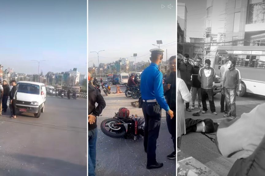 सडकमा रातो बत्ती बलेको बेला रोकिएको भ्यान र मोटरसाइकललाई पछाडिबाट बसले ठक्कर दिंदा दुर्घटना भएको हो ।