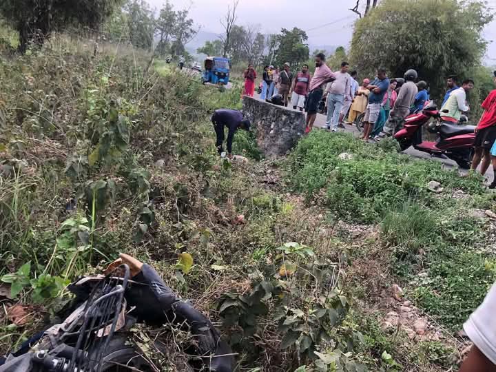 मोटरसाइकल चालकले सन्तुलन गुमाई दुर्घटना भएकाे प्रहरीले जनाएकाे छ ।