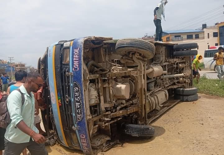 नवलपरासीको बर्दघाटमा बस दुर्घटना, १ को मृत्यु १४ घाइते