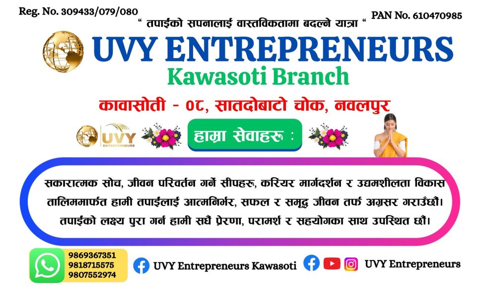 कावासोतीमा रहेको शाखा कार्यालय स्थापना गरी युनिभर्सल इन्टरपेनेर्स प्रा.लि.को नाममा ठगि गरेको पाइएको नवलपुर प्रहरीले जनाएको छ ।