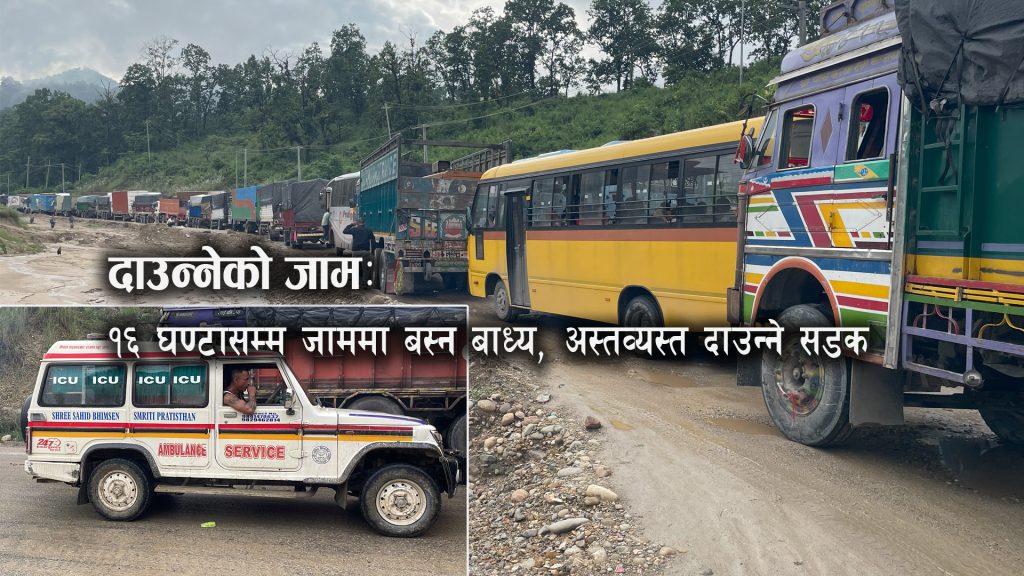 दाउन्नेको १४ किलोमिटर सडक पार गर्न सवारी साधनहरुलाई १० देखि १६ घण्टासम्म लाग्ने गरेको छ । साना तथा ठूला सवारी साधन, लरी, ट्रक, यात्रुवाहक बस, शव वाहनदेखि एम्बुलेन्ससम्म जाममा परेका छन् ।