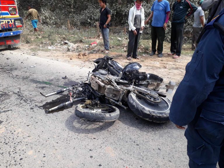 नवलपुरमा मोटरसाइकल दुर्घटना, श्रीमानको मृत्यु श्रीमती गम्भीर घाइते