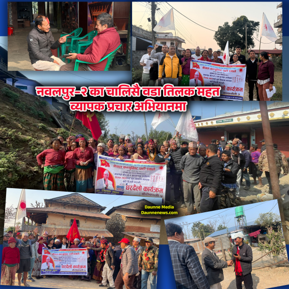 नवलपुर। फागुन २१ गते हुने प्रतिनिधिसभा निर्वाचनलाई लक्षित गर्दै नेपाल कम्युनिस्ट पार्टी (एमाले) ले नवलपुर–२ का चालिसै वडामा प्रचार अभियान तीव्र बनाएको छ।