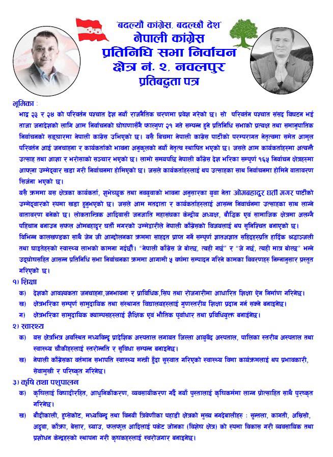 नेपाली काँग्रेस नवलपुर २ का उम्मेदवार घर्तीले गरे आफ्नो प्रतिबद्धता