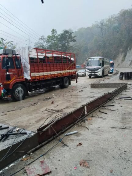 भारी बर्षाले सडक हिलो र चिप्लो भए पछि सवारी साधन उक्लन नसकेको हो । यहाँ ३ दिनदेखि बर्षा भईरहेको छ ।